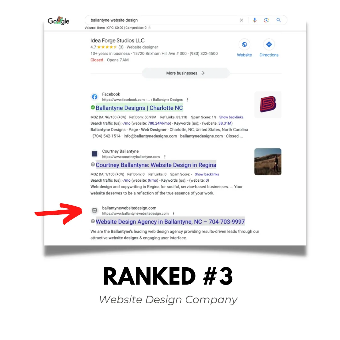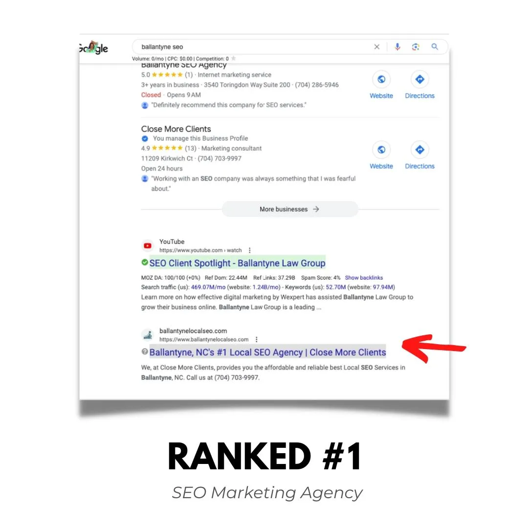 ranked at the top of google for your website